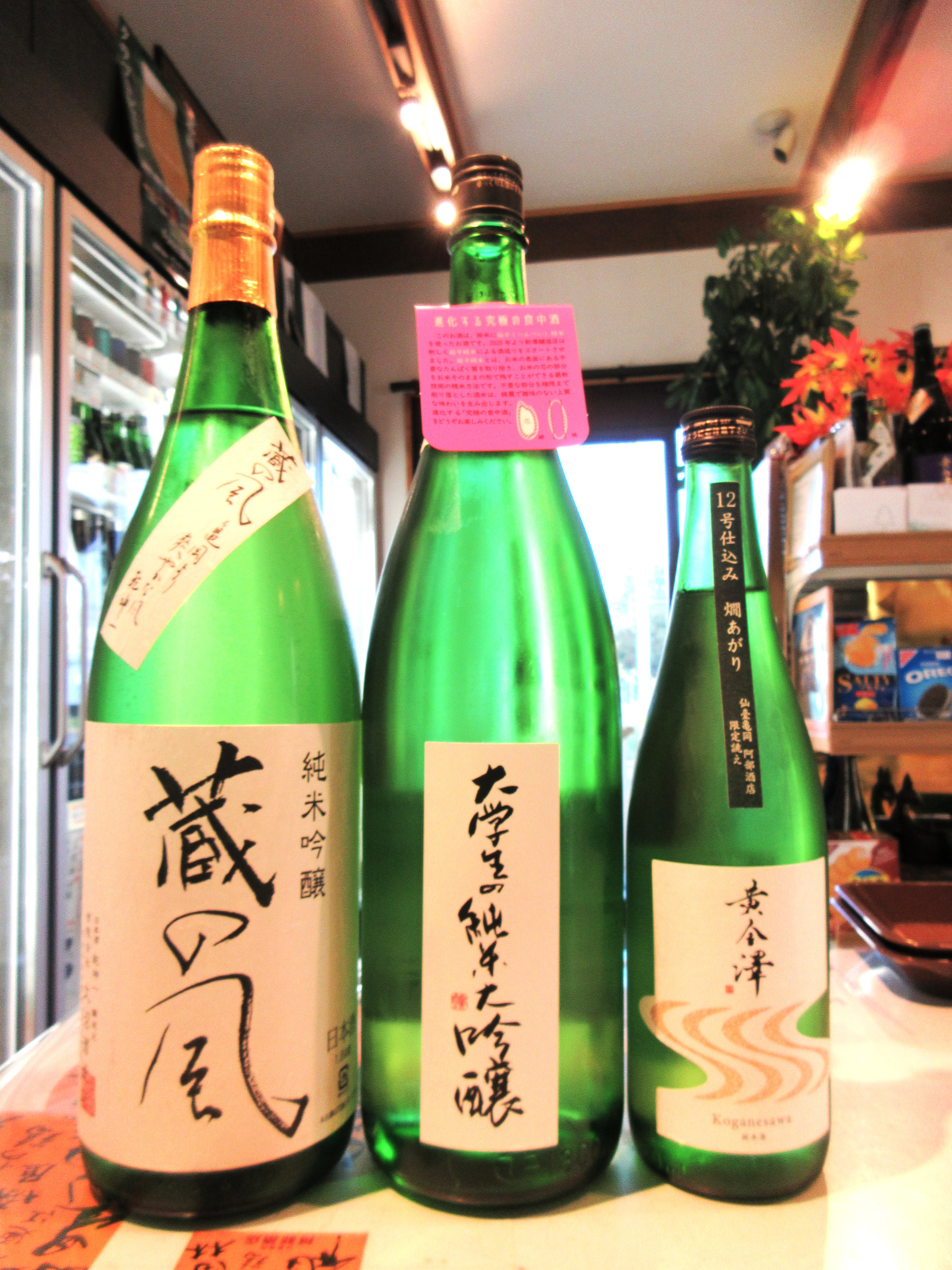 後はやっぱり 黄金澤純米大吟醸斧琴菊のお選びで 日輪田生モト純米
