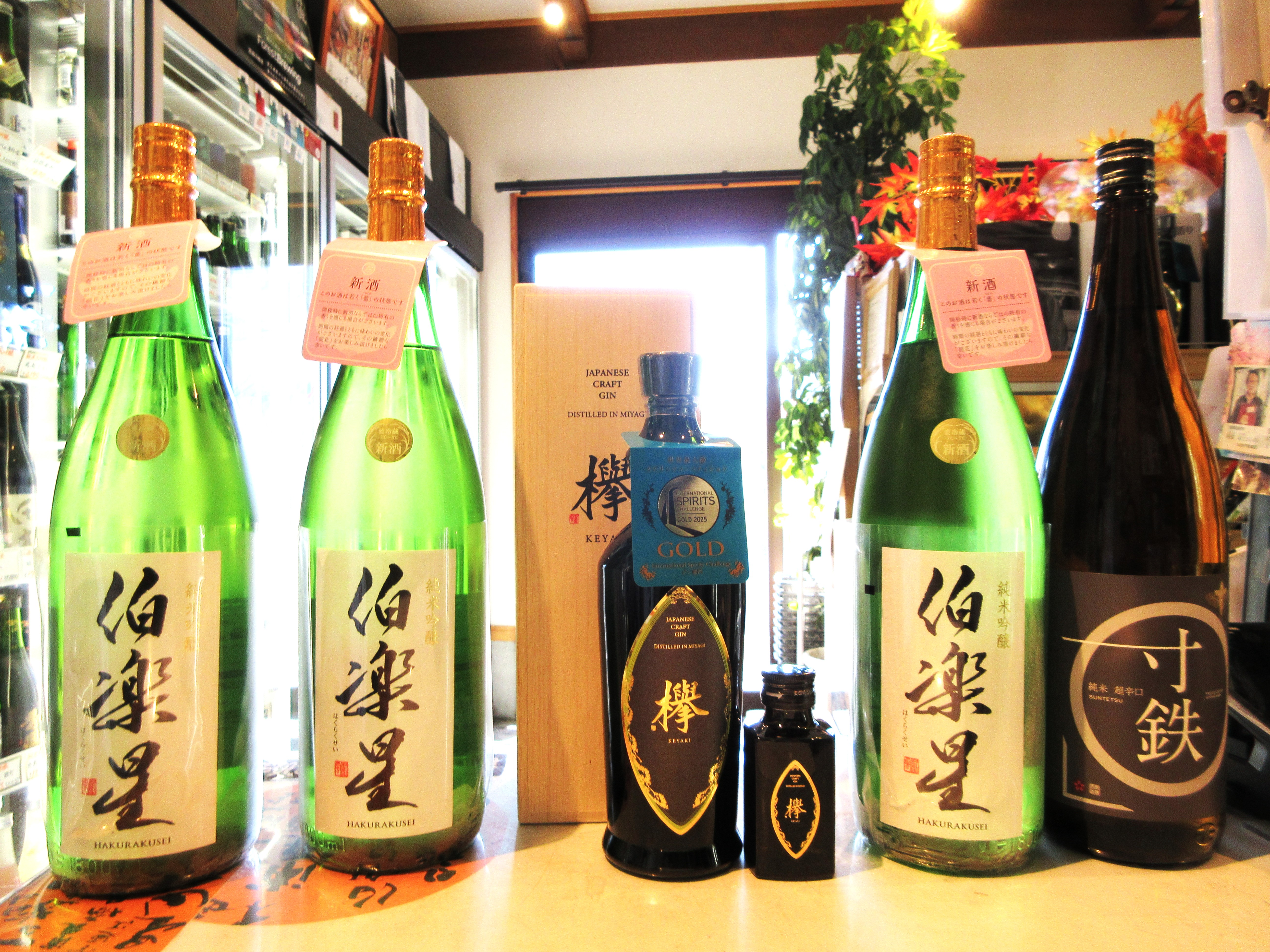 伯楽星純米吟醸雄町 それと宮寒梅純米大吟醸赤ラベルのお求めです