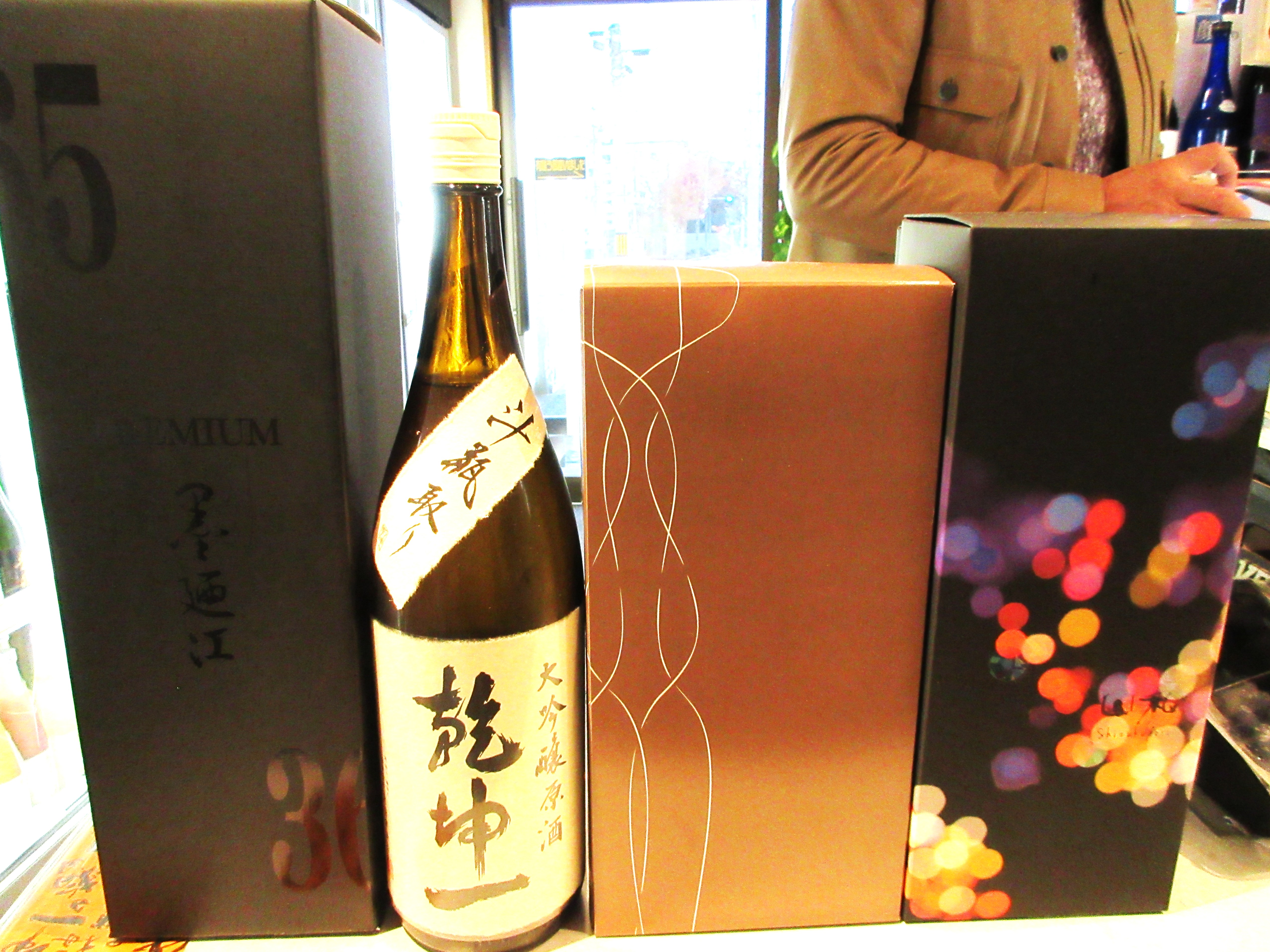 こちらは学生君かな 日高見純米大吟醸ブルーボトルのお求めで 乾坤