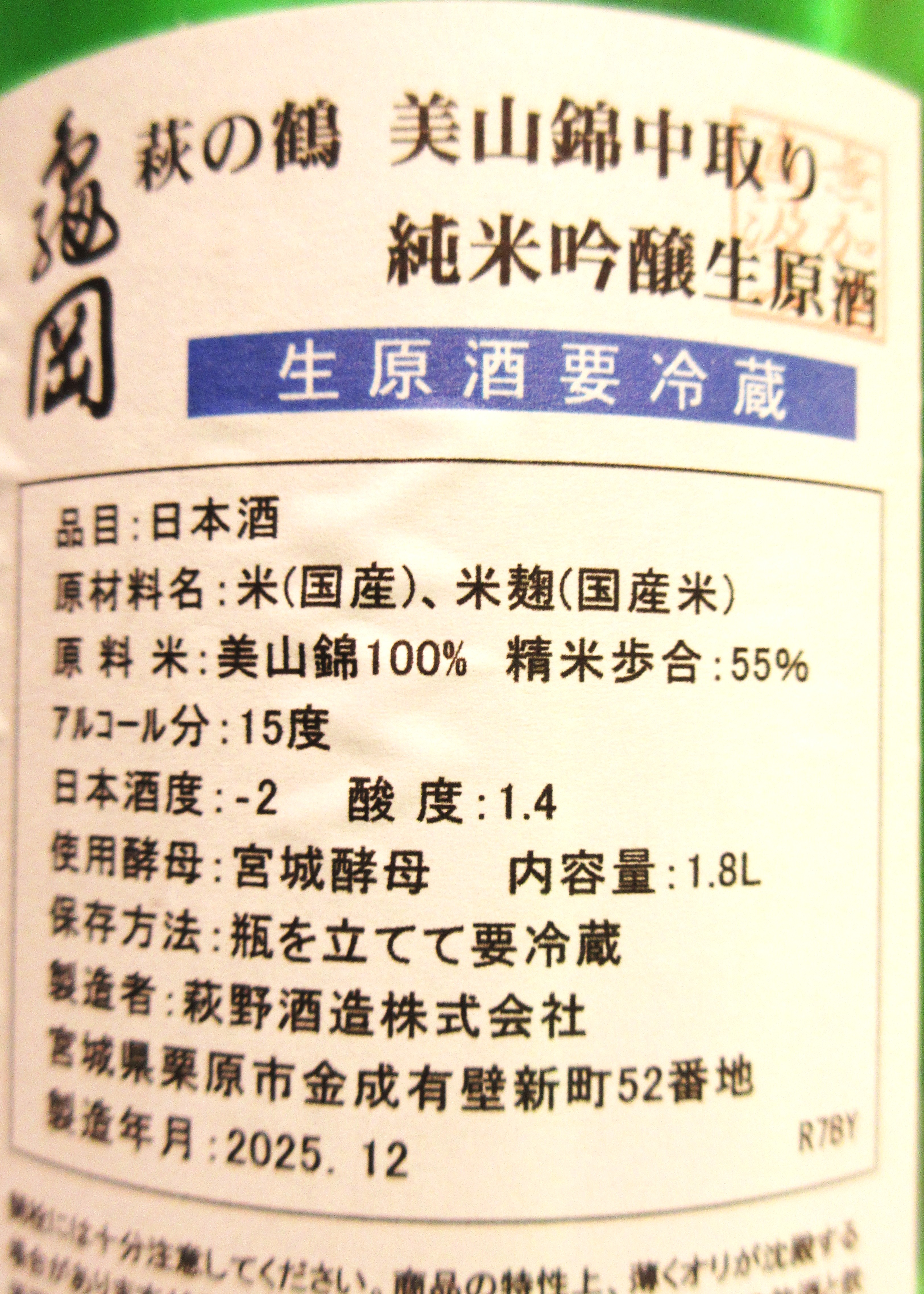 美山錦純米吟醸のこちら亀岡は 萩野酒造さんにとって別撰・別仕込