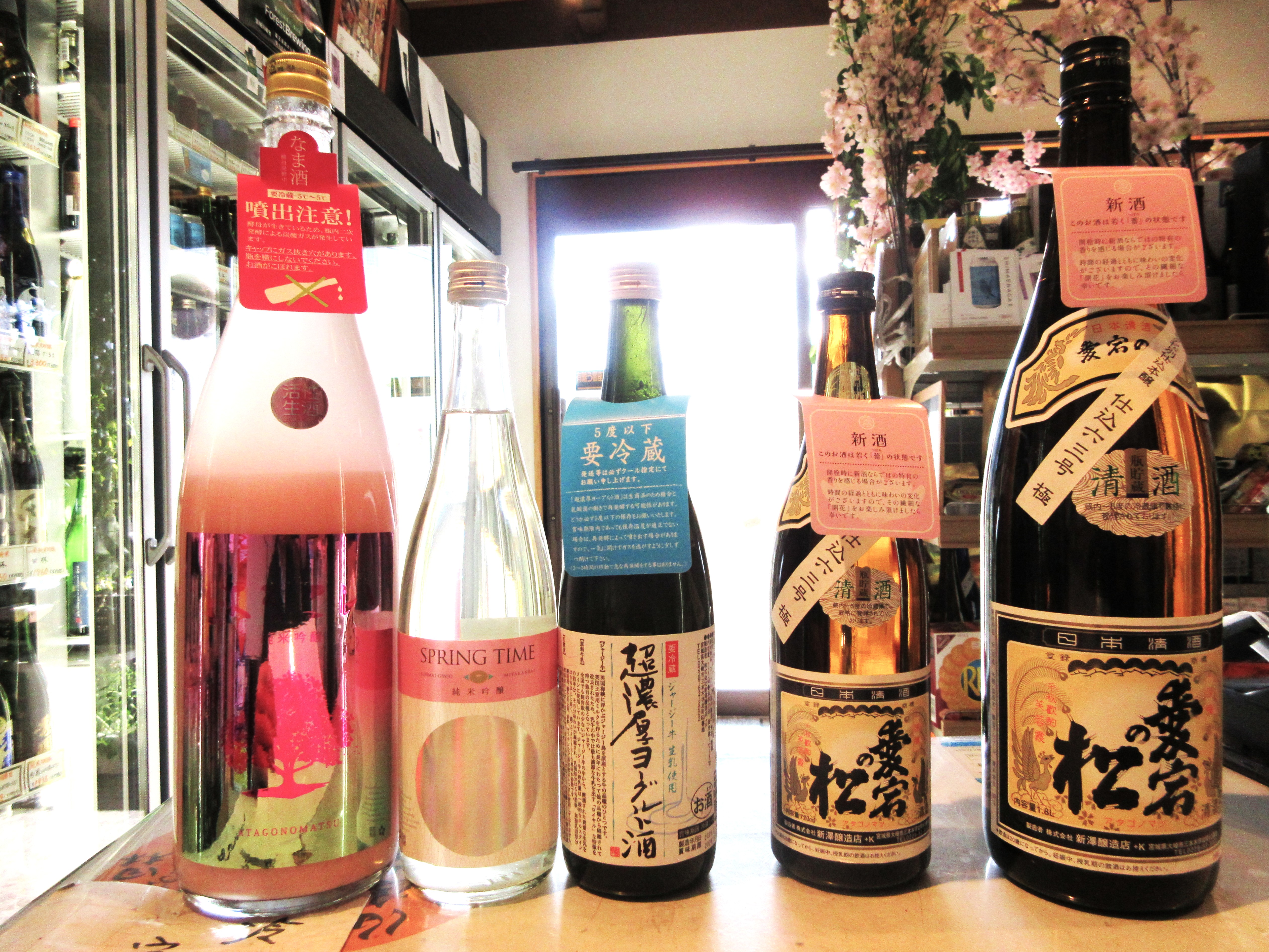 いつもの伯楽星純米吟醸と 宮寒梅純米吟醸はスプリングタイムでなく