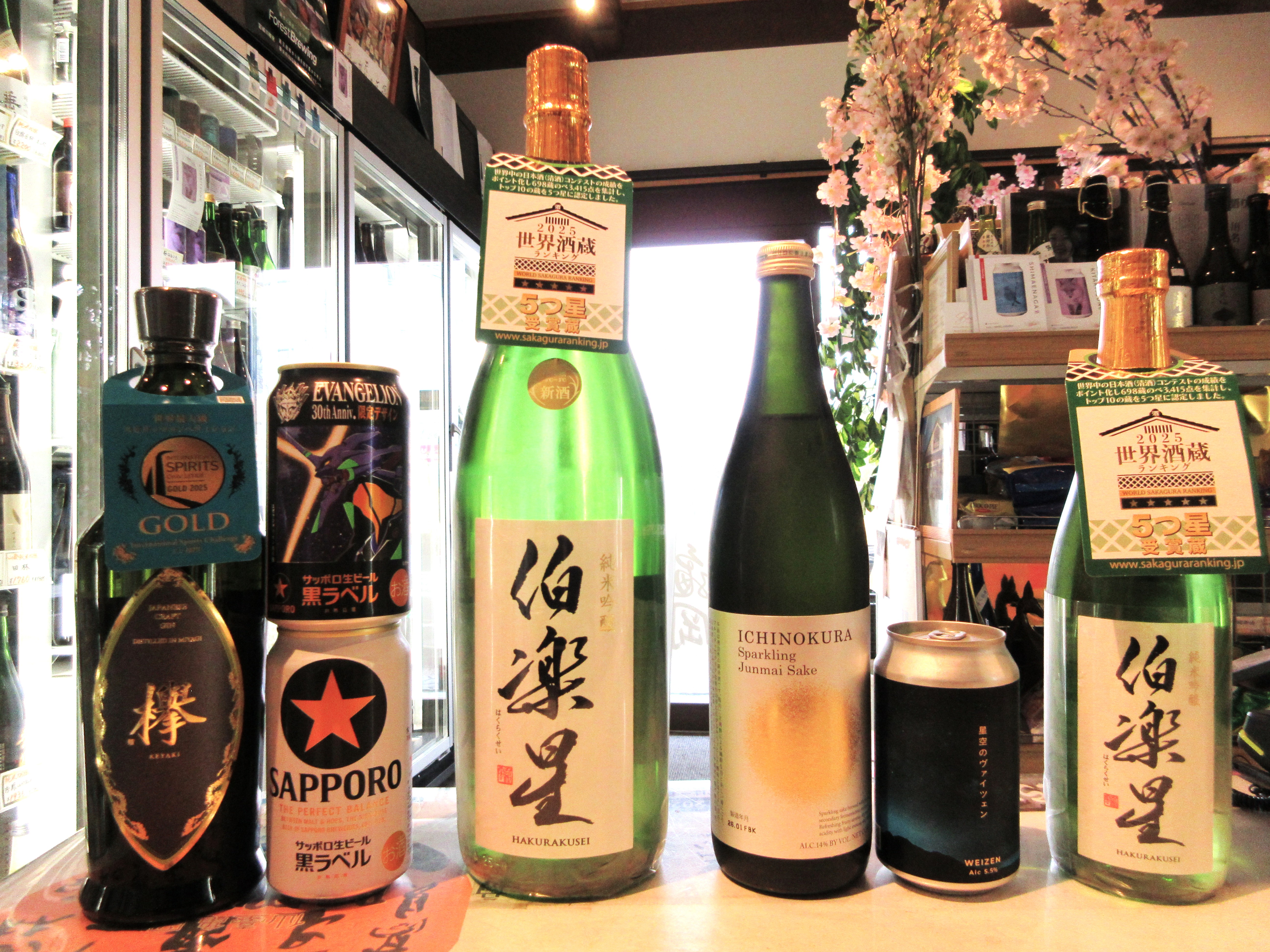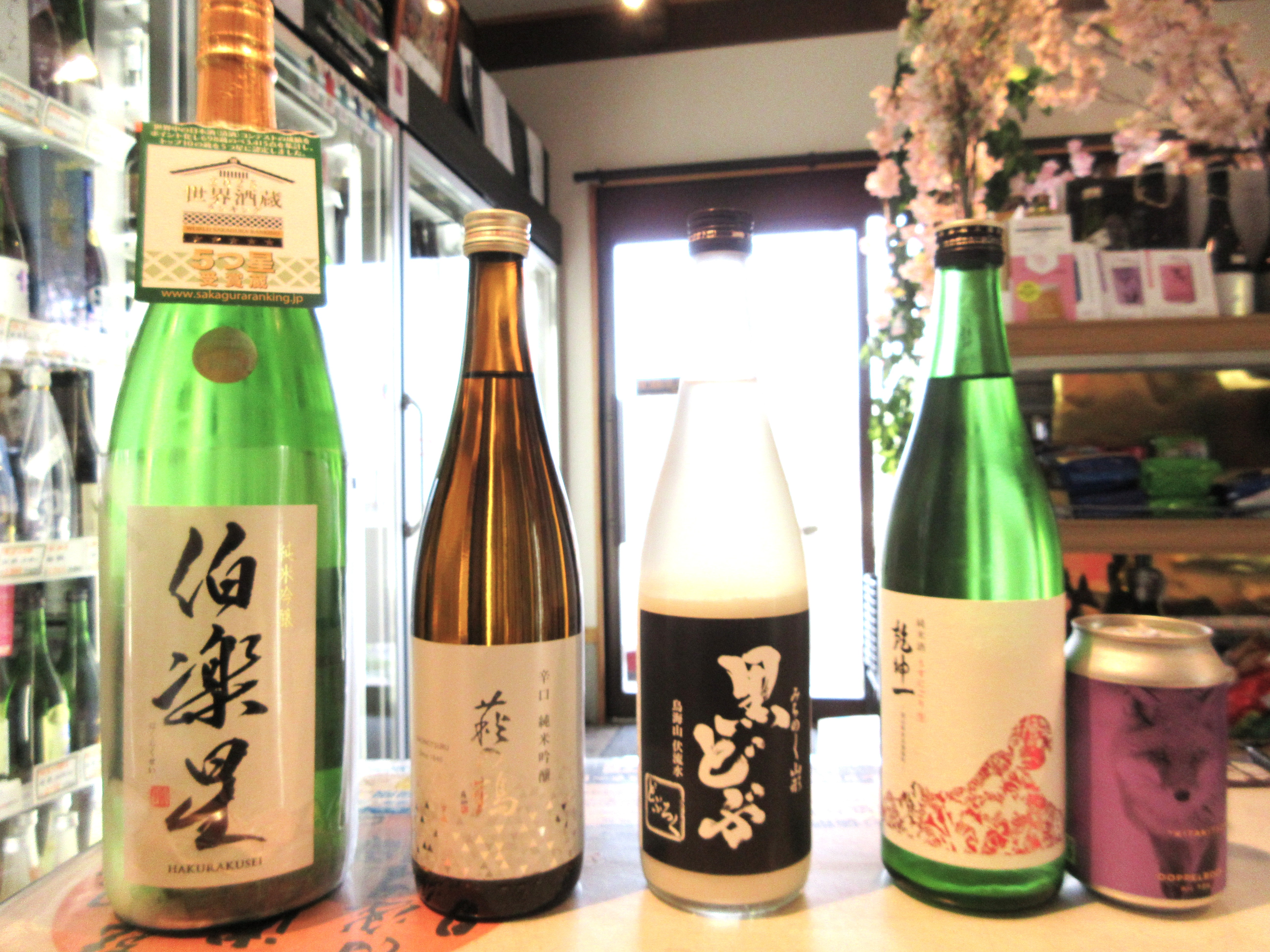 伯楽星純米吟醸と 超辛口純米寸鉄と 今回は まんさくの花純米吟醸