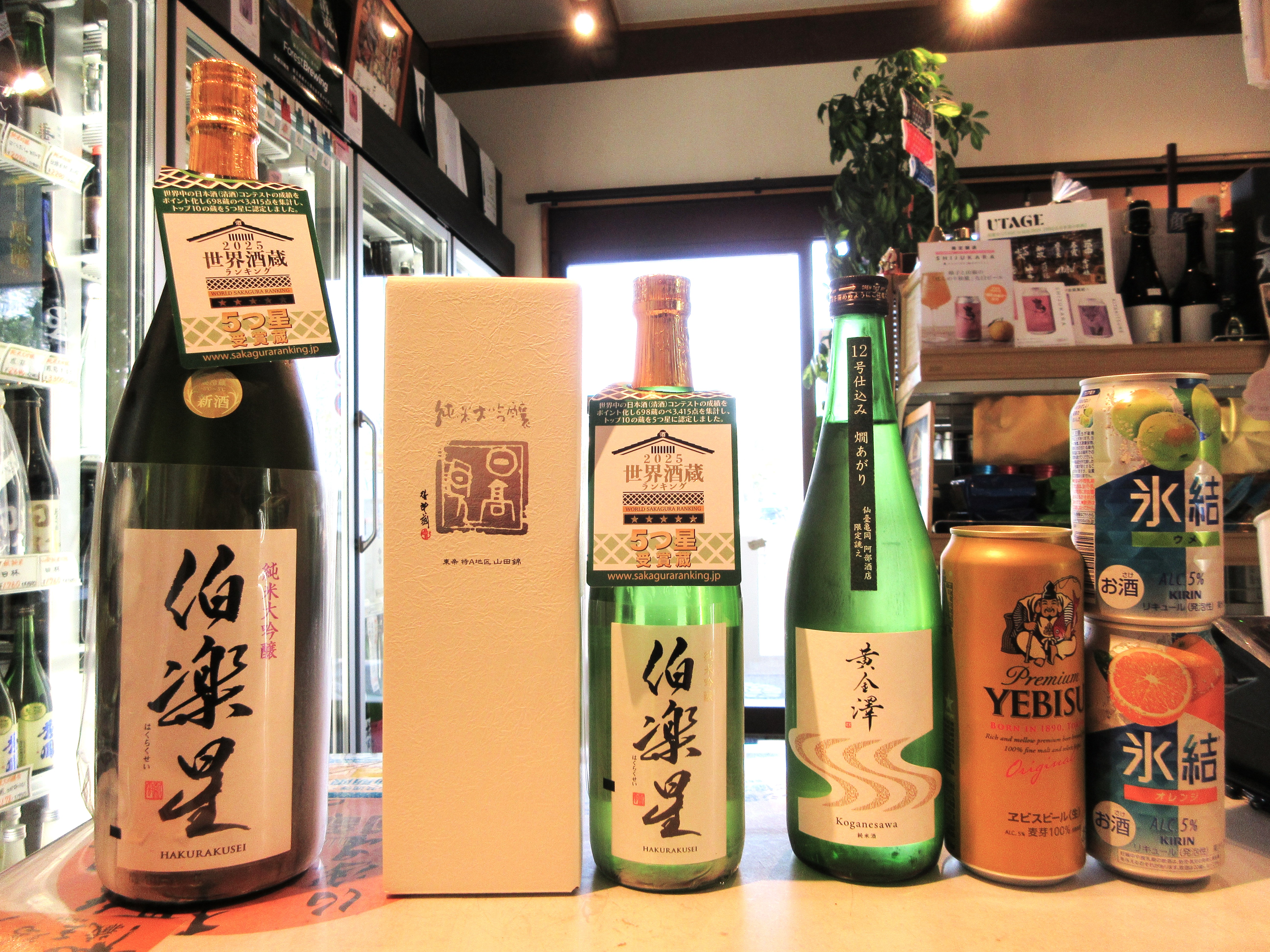 日高見純米大吟醸ブルーボトルと 伯楽星純米吟醸にお決りでお求めで